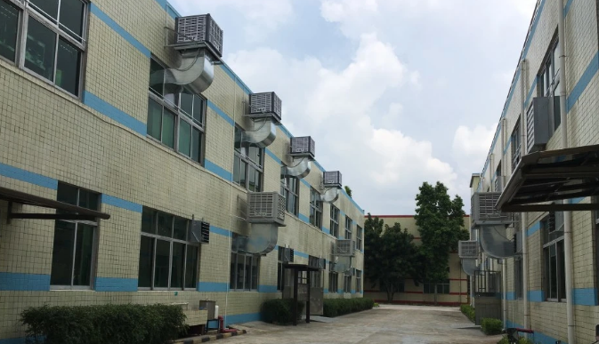 服裝廠在生產(chǎn)加工服裝過(guò)程中,由于針車設(shè)備馬達(dá)散熱擴(kuò)散到車間空氣中,工廠結(jié)構(gòu)裝修隔墻自然通風(fēng)不良,而且因?yàn)橄募臼彝怅?yáng)光強(qiáng)烈照射產(chǎn)生的高溫等,導(dǎo)致服裝廠車間環(huán)境溫度不斷升高,尤其是衣服布料中還揮發(fā)了一些含甲醛的氣體,將這些有害空氣吸入員工體內(nèi),逐漸出現(xiàn)抵抗力、免疫力下降,甚至出現(xiàn)白血病、癌癥等職業(yè)病。這里小編介紹兩種方案解決上述問(wèn)題。