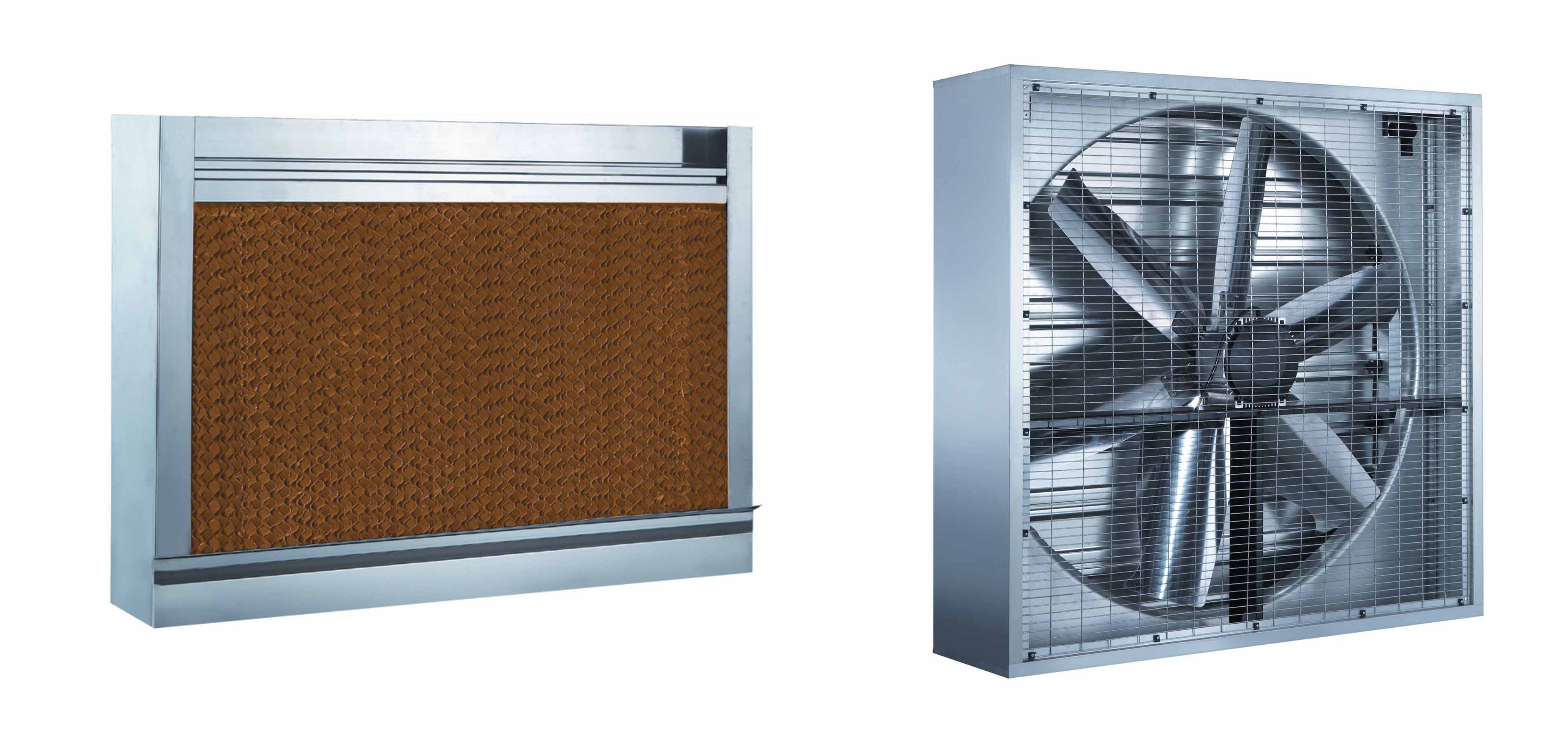 3.水簾降溫:水簾的原理是用大功率的風(fēng)機(jī)把外面的風(fēng)吹過(guò)濕簾,通過(guò)水蒸發(fā)吸熱來(lái)降溫的,優(yōu)點(diǎn)就是適合大面積降溫。缺點(diǎn)是,大面積降溫要的風(fēng)機(jī)功率很大,一般要上十幾個(gè)千瓦,離風(fēng)機(jī)比較遠(yuǎn)的地方降溫效果很差;